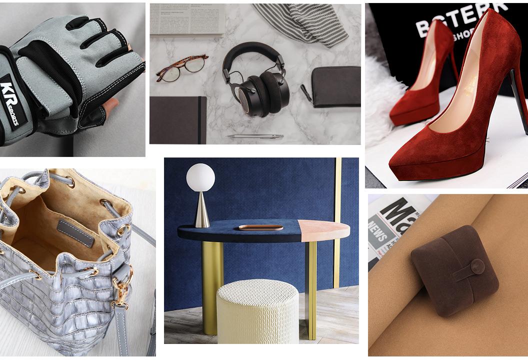 绒面超纤正是因其超强的物理特性和环保优越性,被广泛应用在各行各业中,像日常生活中常见的运动鞋面、手机壳内里、汽车座椅内饰、手套、首饰盒、高档沙发、皮具等,都能见到绒面超纤的身影。
